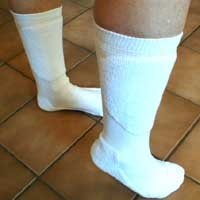 The clean swipe is an athletic sock designed for indoor sporting events such as volleyball and basketball where sweat, dust, and polished floors can make for hazardous footing. The clean swipe has been designed with a reverse padding area which gives the athlete an area to "dust off" the soles of their shores for increased traction. In addition to these swipe pads the socks have padded soles, arch support and stay up tops for added comfort and playing power.