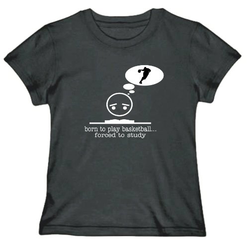 BORN TO play Basketball ... FORCED TO STUDY ! Sports Womens T-Shirt (Dark Silver, Size Large) Reviews